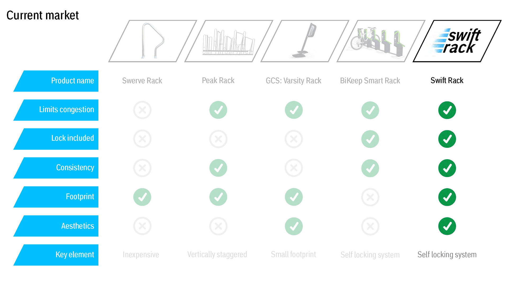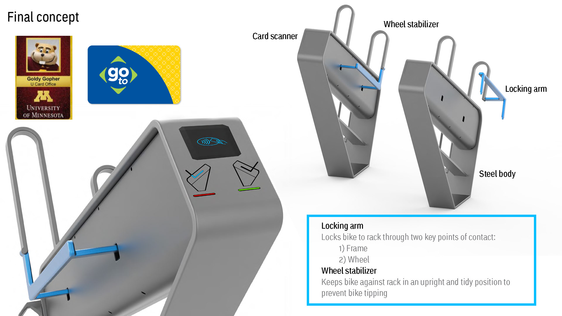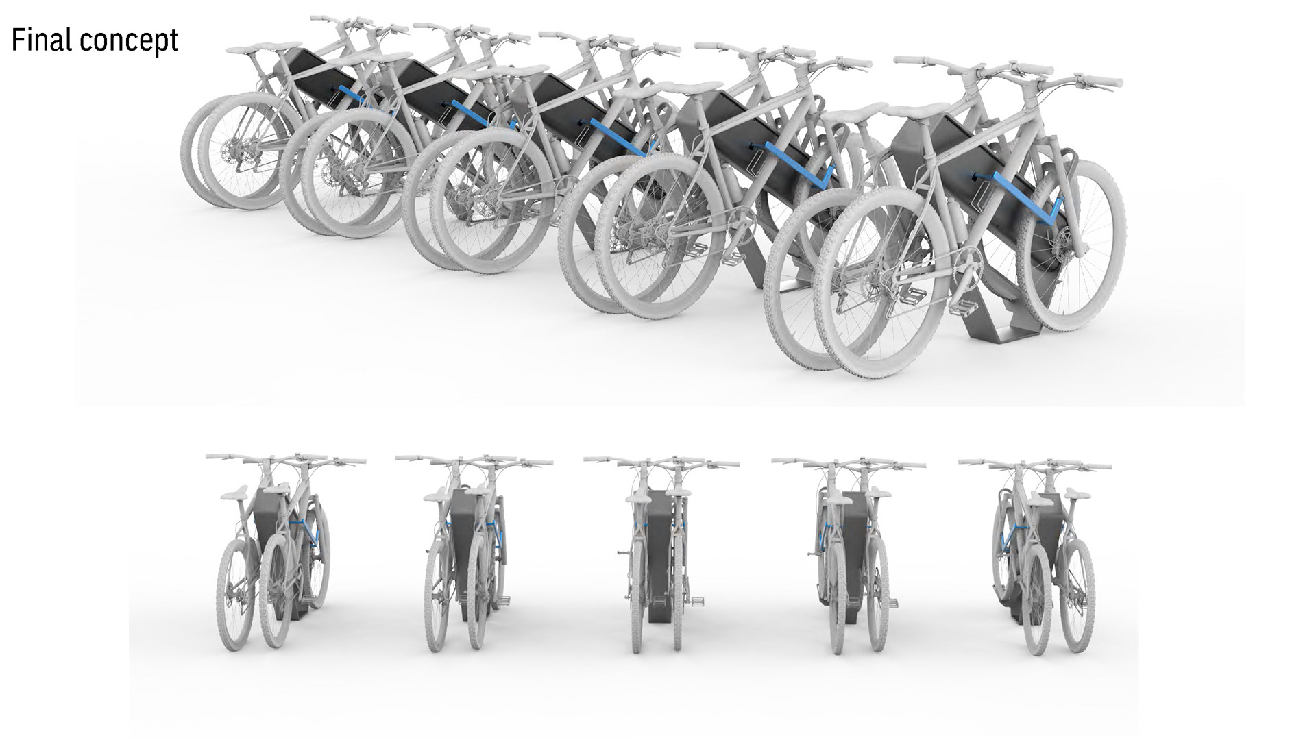 An aesthetic public bike rack with streamlined user experience for all bikers